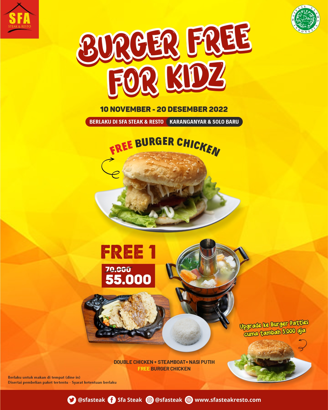 BAGI-BAGI BURGER GRATIS SIAPA YANG MAU?? YUK LANGSUNG MERAPAT KE SFA STEAK & RESTO AJA!!
