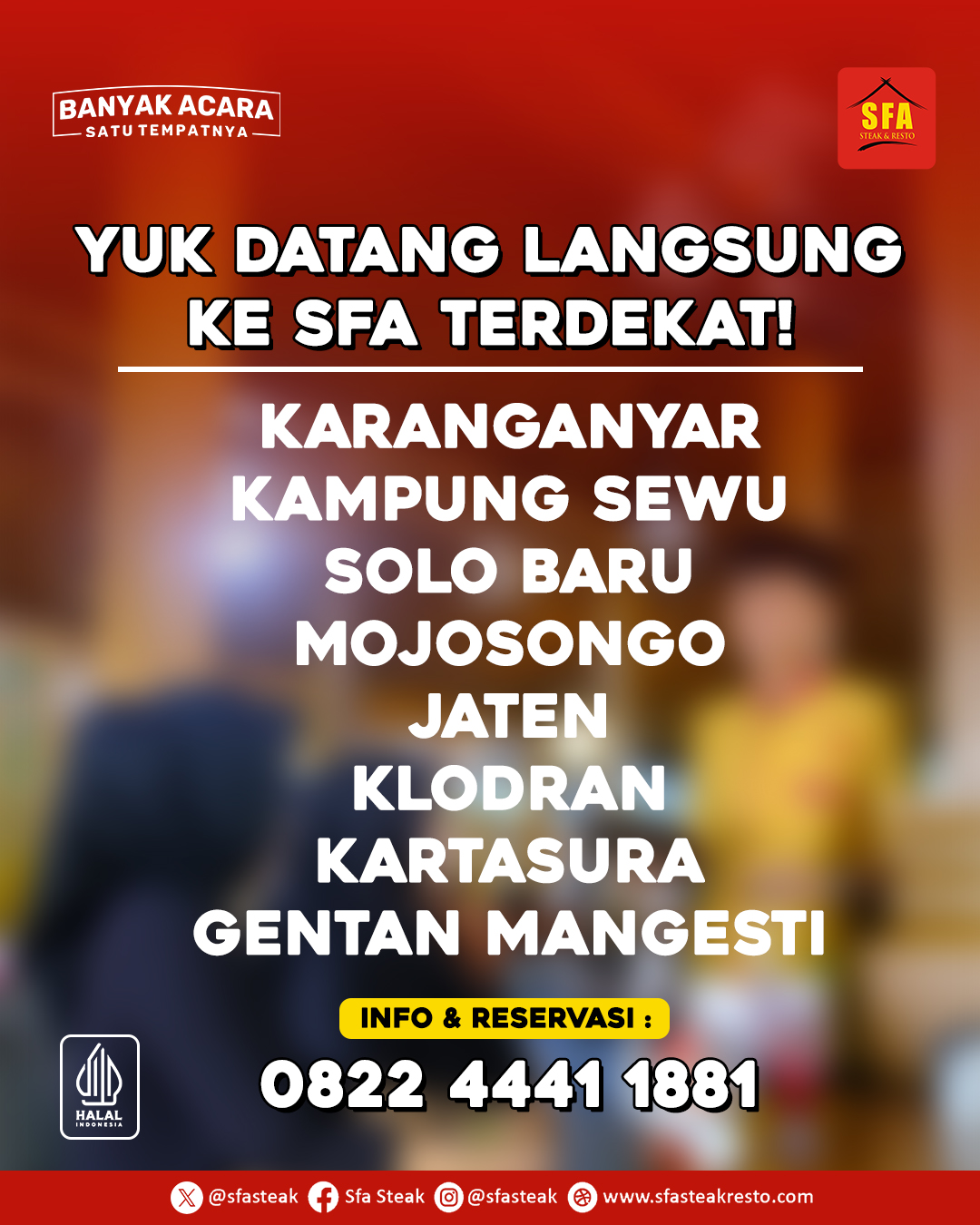 Jadi, gak perlu mikir lama. Langsung aja ajak bestie, keluarga, atau pasangan buat cobain menu andalan di SFA Steak & Resto ????